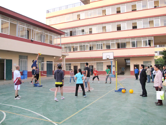 進(jìn)行氣排球友誼比賽